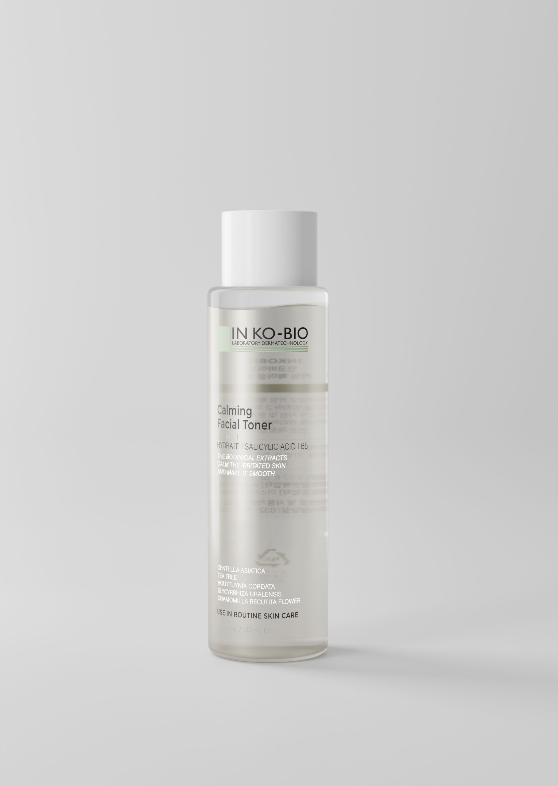 IN KO-BIO Calming Facial Toner는 5가지 기능을 하나로 제공하는 멀티 토너입니다: 보습, 자극 완화, 부드러운 각질 제거, 항균 및 pH 밸런스. 병풀, 티트리, 약모밀 등 천연 성분으로 깨끗하고 건강한 피부를 선사합니다.